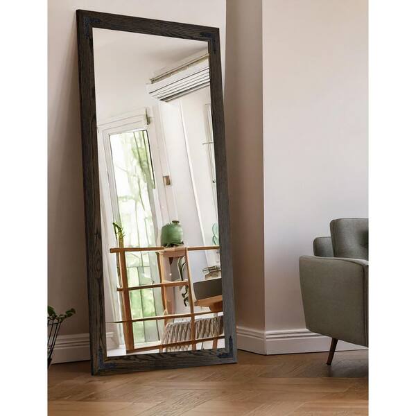 (33 in. W x 66 in. H) Ebony Hardwood Rectangle Mirror with Decorative Corner Bracket