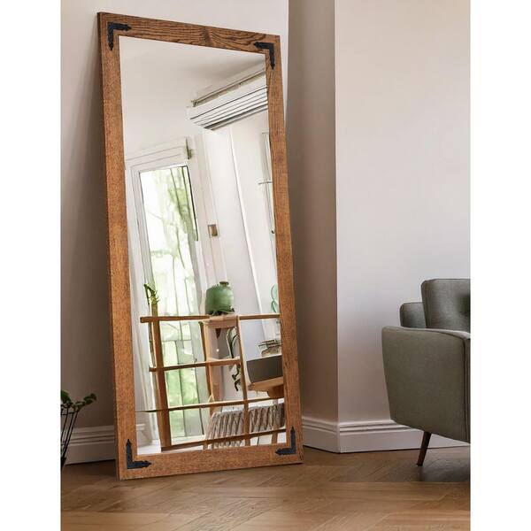 (33 in. W x 72 in. H) Honey Hardwood Rectangle Mirror with Decorative Corner Bracket