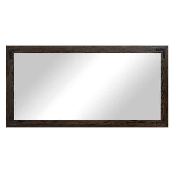 (33 in. W x 74 in. H) Ebony Hardwood Rectangle Mirror with Decorative Corner Bracket