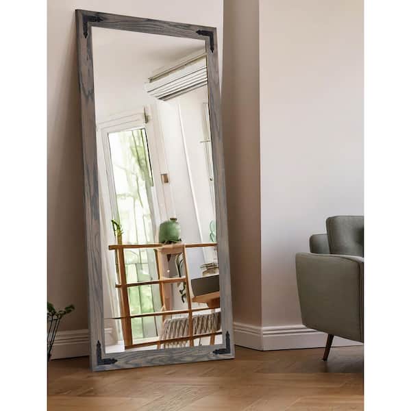 (33 in. W x 80 in. H) Carbon Grey Hardwood Rectangle Mirror with Decorative Corner Bracket