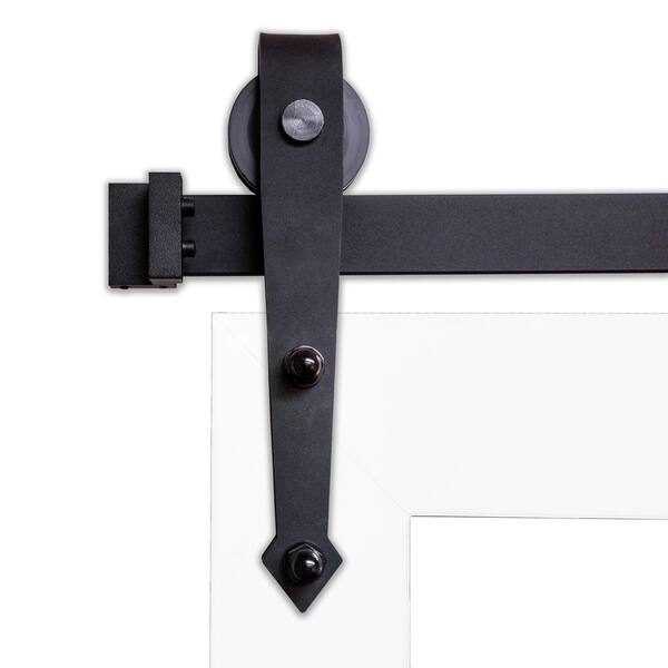 (58 in. W x 31 in. H) White Accent Mirror With Steel Barn Door Rail
