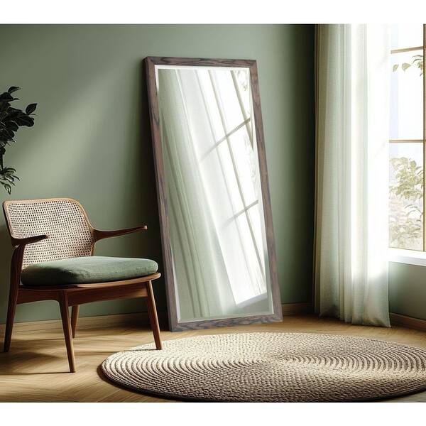 Large 2in Beveled (30 in. W x 63.5 in. H) Wooden Carbon Grey Rectangle Wall Mirror