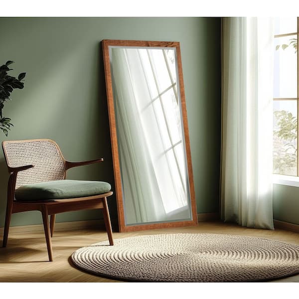 Large 2in Beveled (30 in. W x 63.5 in. H) Wooden Honey Rectangle Wall Mirror