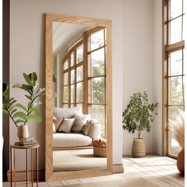 Large Tall (33 in. W x 70 in. H) Wooden Natural Rectangle Wall Mirror