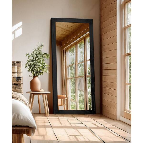 Large Tall (33 in. W x 80 in. H) Wooden Black Rectangle Wall Mirror