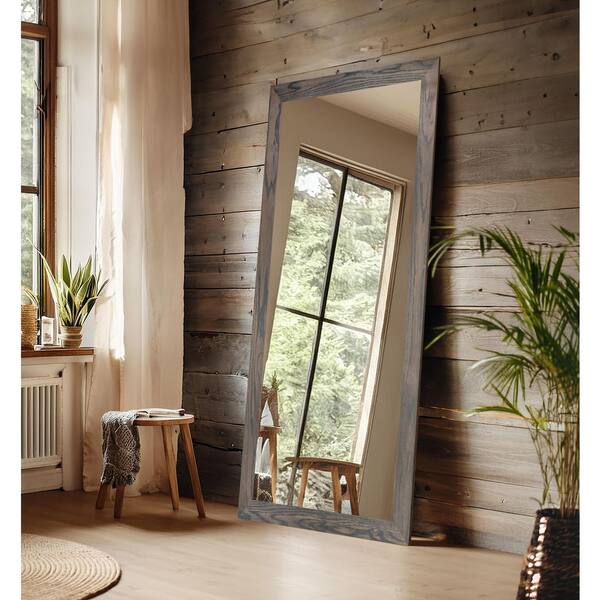 Large Tall (33 in. W x 80 in. H) Wooden Carbon Grey Rectangle Wall Mirror