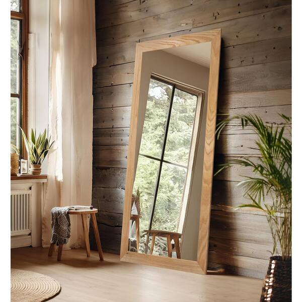 Large Tall (33 in. W x 80 in. H) Wooden Natural Rectangle Wall Mirror