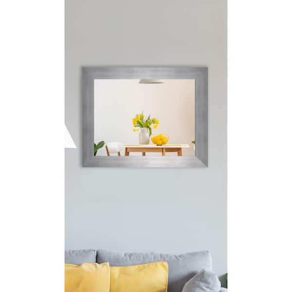 Modern Rustic (34 in. W x 33 in. H) Matte Silver MDF Wide Rectangle Mirror