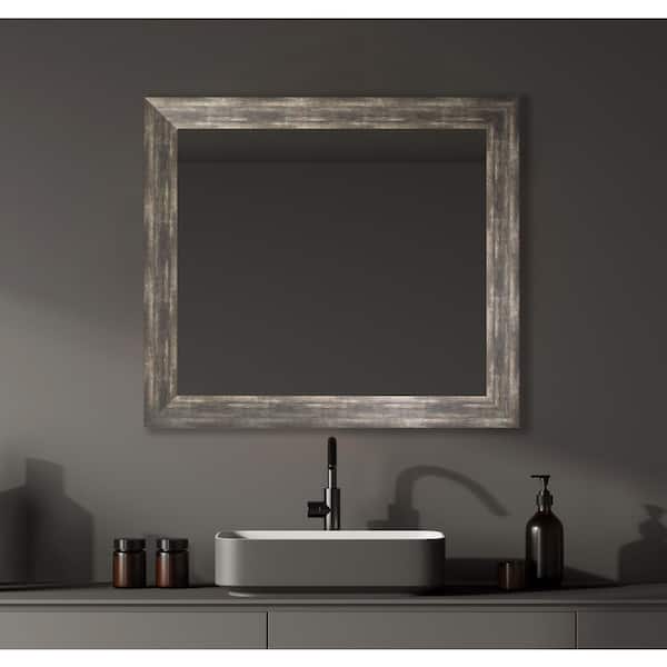 Modern Rustic (42 in. W x 33 in. H) Brushed Brown MDF Wide Rectangle Mirror