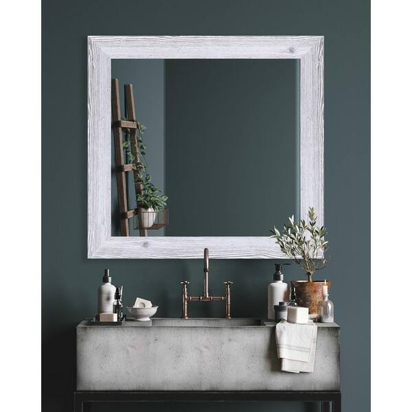 Modern Rustic (44 in. W x 33 in. H) White Distressed MDF Wide Rectangle Mirror
