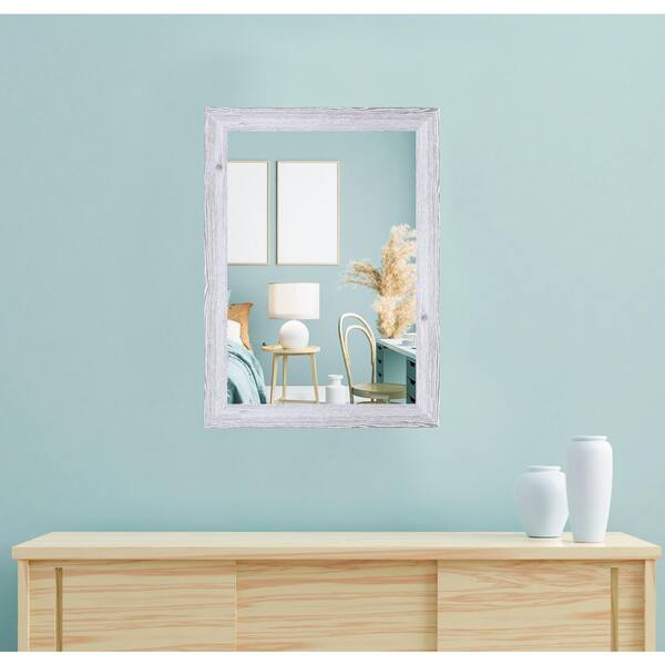 Modern Rustic (52 in. W x 33 in. H) White Distressed MDF Wide Rectangle Mirror