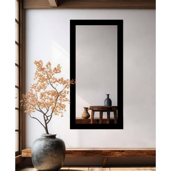 Modern Rustic (76 in. W x 33 in. H) Gloss Black MDF Wide Rectangle Mirror