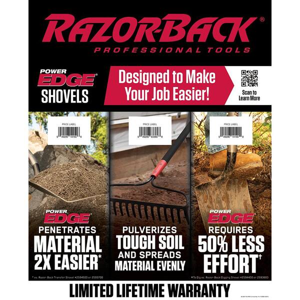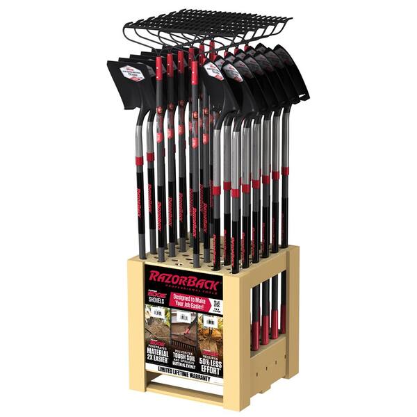 30 ct Mixed 48 in Fiberglass Handle Steel Blade Garden Rake and Digging Shovel Display