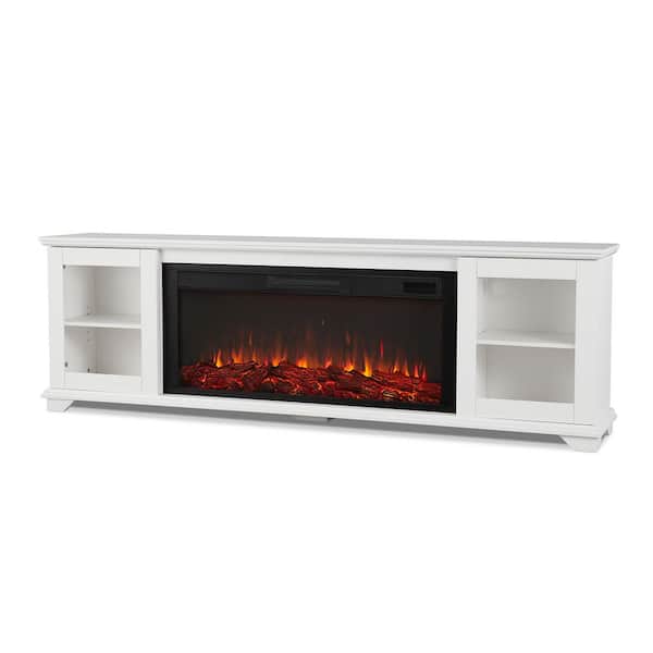 Benjamin 81 in. Freestanding Wood Electric Fireplace TV Stand in White