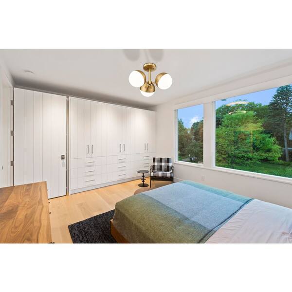 Realm Sphere 17.25 in. Modern Gold 3 Light Semi Flush Mount with Matte Opal Glass Shades
