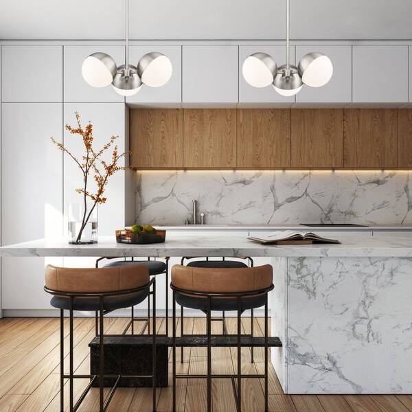 Realm Sphere 3 Light Brushed Nickel Chandelier with Matte Opal Glass Shades for Indoor Use with No Bulbs Included
