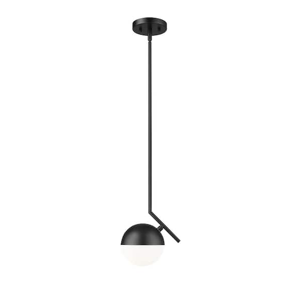 • Modern matte black pendant light with opal glass shade