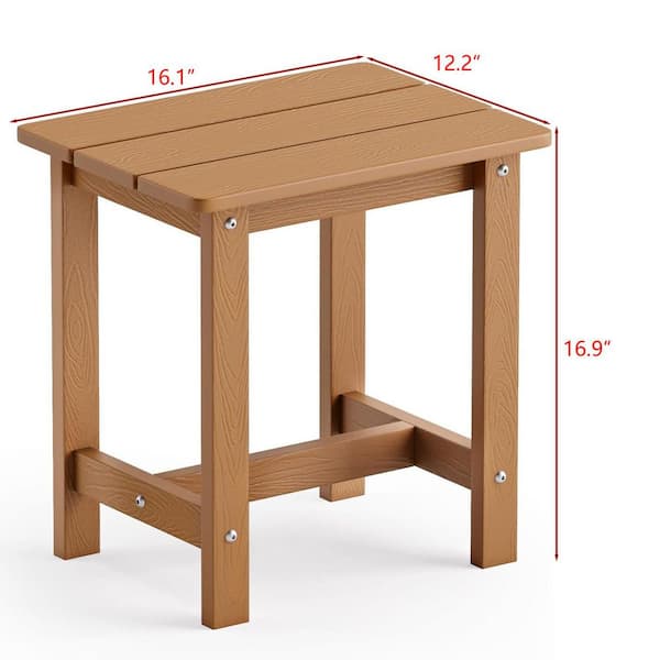 Rectangular Plastic Outdoor Side Table, Teak, Set of 2