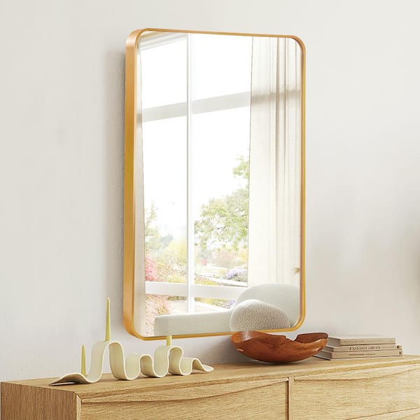 Rectangular gold Wall Mirror 30 in. x 40 in., Aluminum Alloy Frame Contemporary Hanging Mirror for Living Room Bedroom