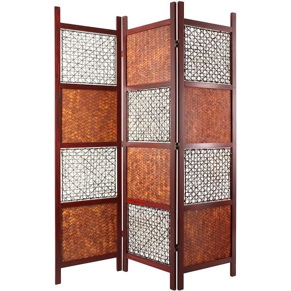 6 ft. Multi Color 3-Panel Bamboo Leaf Room Divider