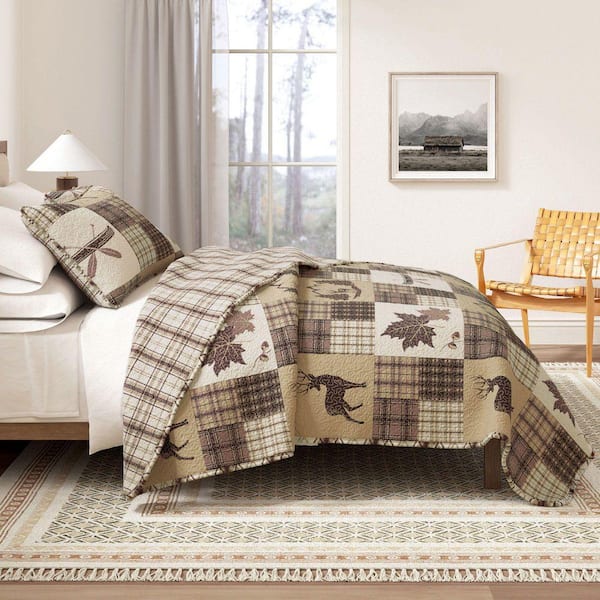Red Reversible Rustic Lodge Patchwork King Microfiber 3-Piece Quilt Set Bedspread