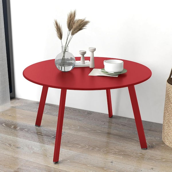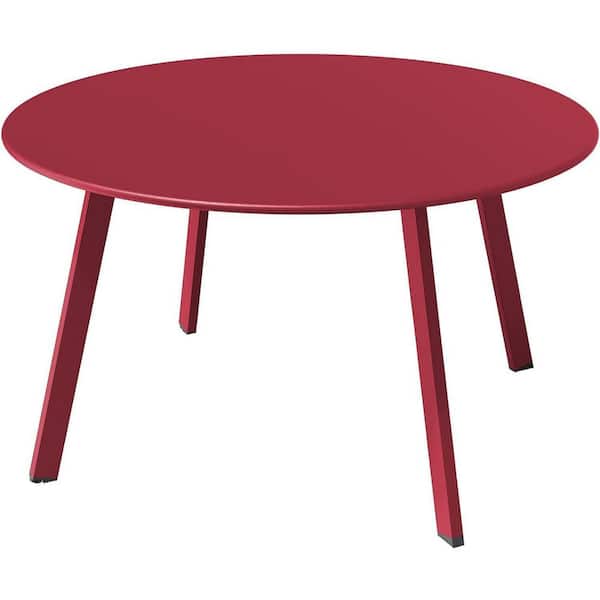 Red Round Metal Outdoor Coffee Table for Backyard, Patio, Deck