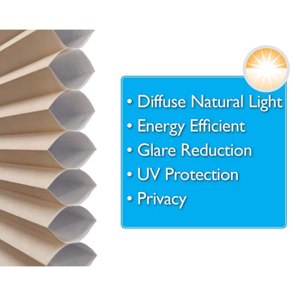No Tools Easy Lift Trim-at-Home Cordless Cellular Light Filtering Fabric Shade Natural, 30 in. W x 64 in. L