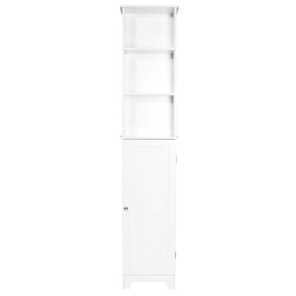 Contemporary Country 13.5 in. W x 8 in. D x 65 in. H Free Standing Floor Shelf with Lower Cabinet in White