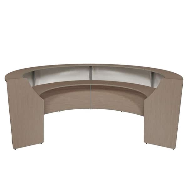 142 in. Noble Oak Marque Plexi Four-Unit Reception Curved Desk Workstation