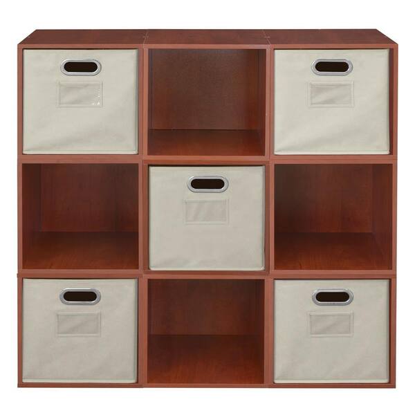 39 in. H x 39 in. W x 13 in. D Cherry Wood 14-Cube Organizer