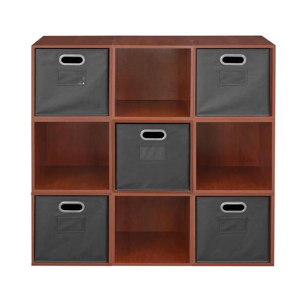 39 in. H x 39 in. W x 13 in. D Cherry Wood 14-Cube Organizer