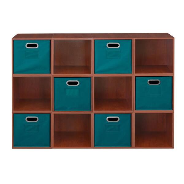 39 in. H x 52 in. W x 13 in. D Cherry Wood 18-Cube Organizer