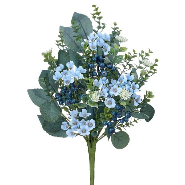 19 in. Blue Indoor Artificial Wild Blueberry Blossom