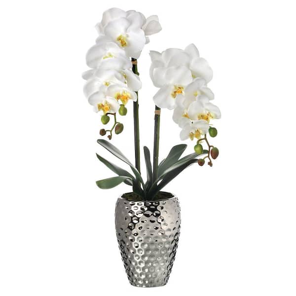 24 in. White Artificial Orchid in Pot