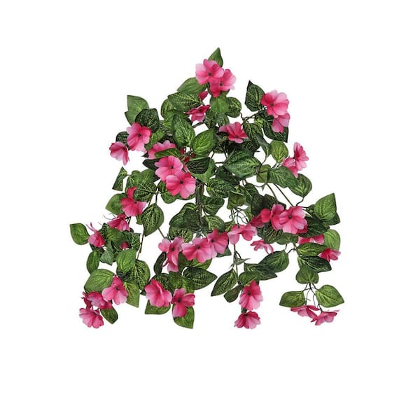 26 in. Pink Indoor Artificial Hanging Impatient Plant
