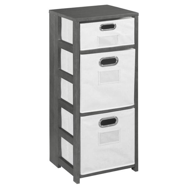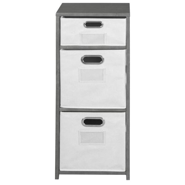 Nemus 34 in. Grey and White 3-Shelf Square Folding Standard Bookcase with Folding Fabric Bins