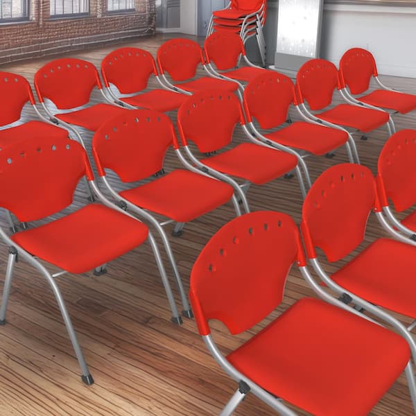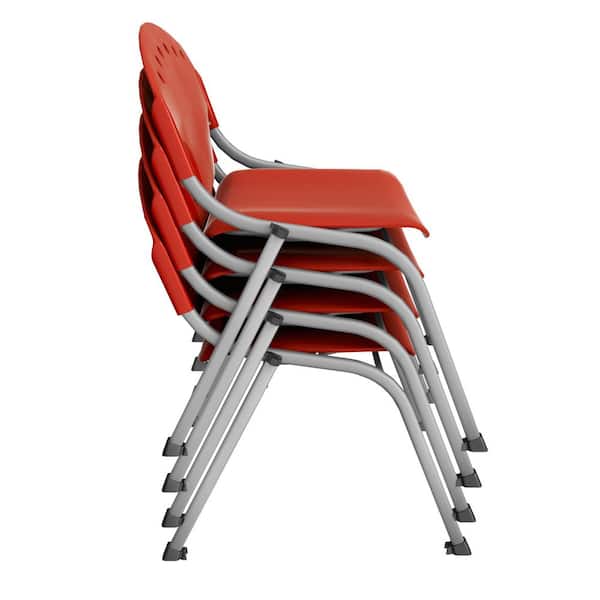 Rico Plastic Classroom Training Office Stack Armless Chair in Red-4 Pack