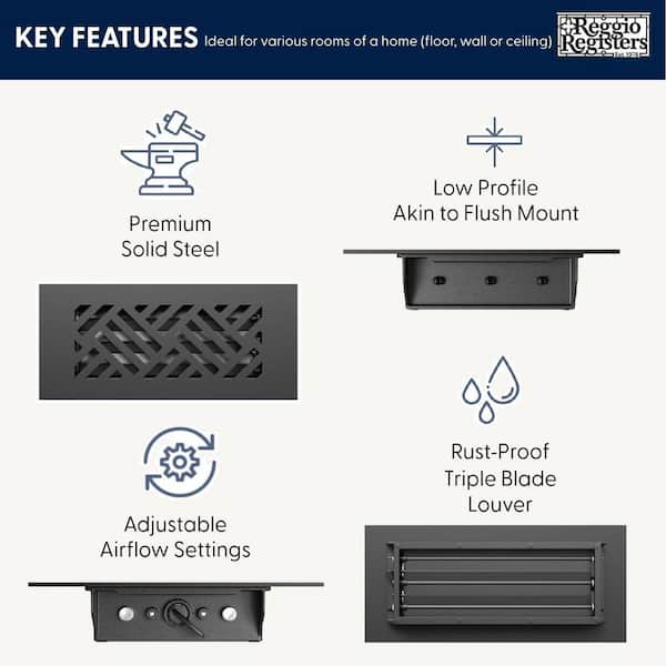 • 14-gauge steel floor vent cover for a flush mounted look