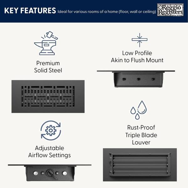 Low Profile 10 in. x 4 in. Steel Floor Register in Black Woven Pattern (1-Pack)