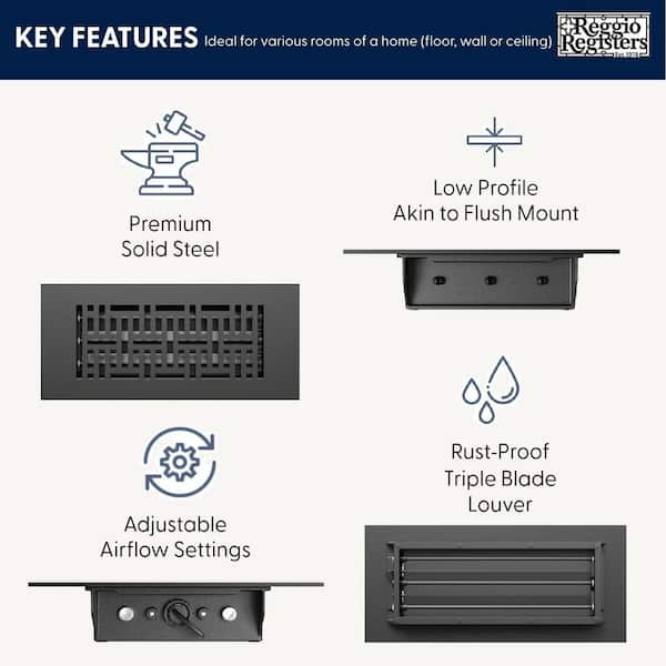• Overall outside dimension 5.5" x 12" to fit 4"x10" duct opening