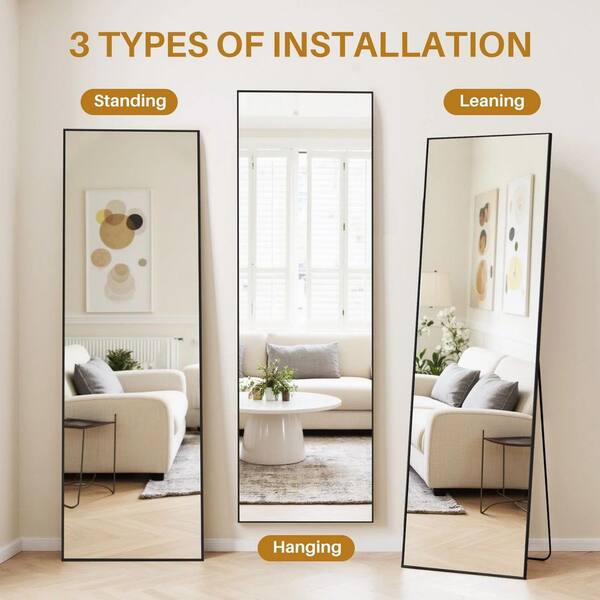 16 in. W x 59 in. H Rectangular Framed Tilt Wall Bathroom Vanity Mirror in Black