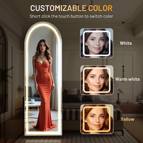 16 in. W x 60 in. H Arched Shape Frameless Tilt Wall Bathroom Vanity Mirror in White