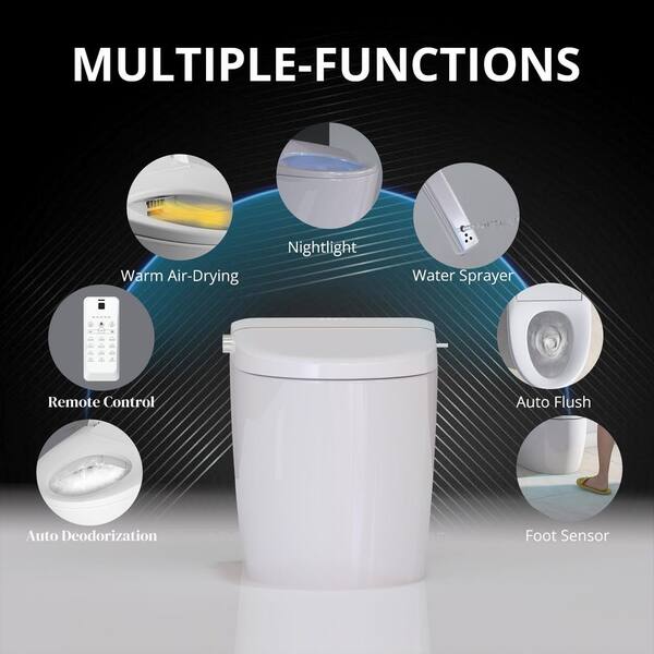 Foot Sensor Smart Elongated Bidet Toilet 1.28 GPF in Glossy White with Adjustable Sprayer Settings