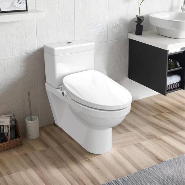 Soft Close Electric Bidet Seat for Elongated Toilets with Dual Nozzle in White, IPX4 Waterproof
