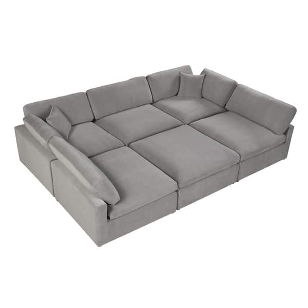 Remington Gray Velvet Square Modular Ottoman