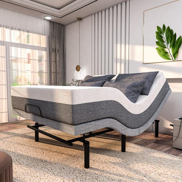 Gray SFE Full Adjustable Bed Frame Plus Medium-Soft Cooling Gel Memory Foam Mattress-USB Under Bed Light Wireless Remote