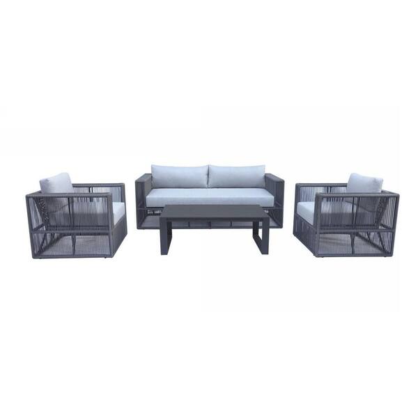 Renava Whimsy 4-Piece Aluminum Patio Conversation Set with Light Grey Cushions