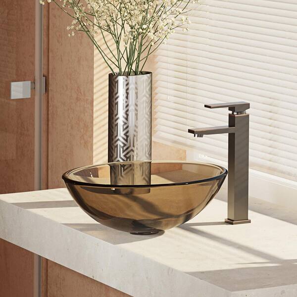 Glass Vessel Sink in Cashmere with R9-7003 Faucet and Pop-Up Drain in Antique Bronze