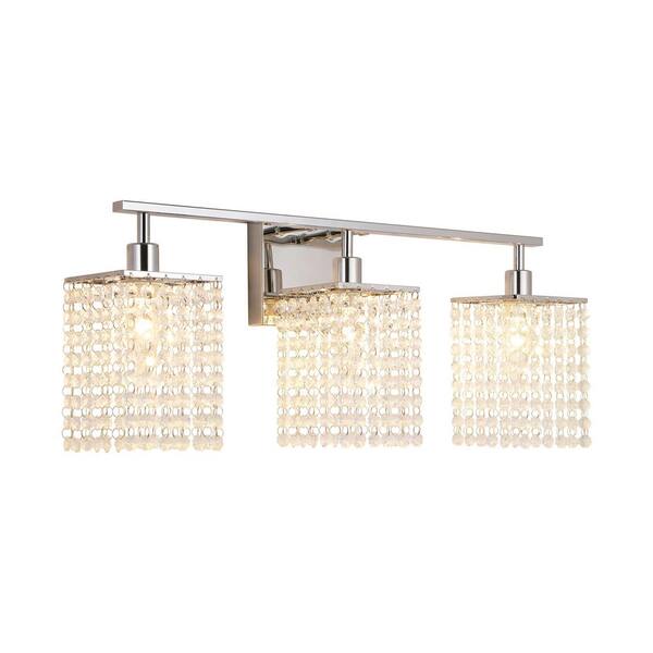 Aaliyah Contemporary 24 in. W Glam Chrome 3-Light Square Crystal Vanity Light with Hanging Crystal Strands
