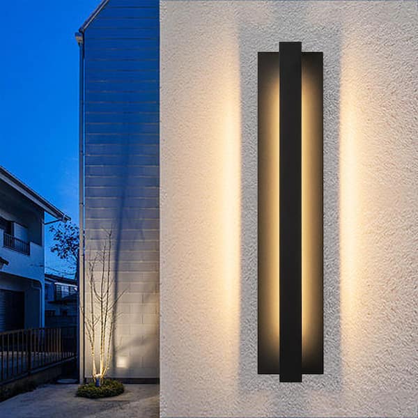 Agnes 24 in. Matte Black Sleek Rectangular Waterproof 3000K LED Hardwired Cylinder Outdoor Wall Sconce
